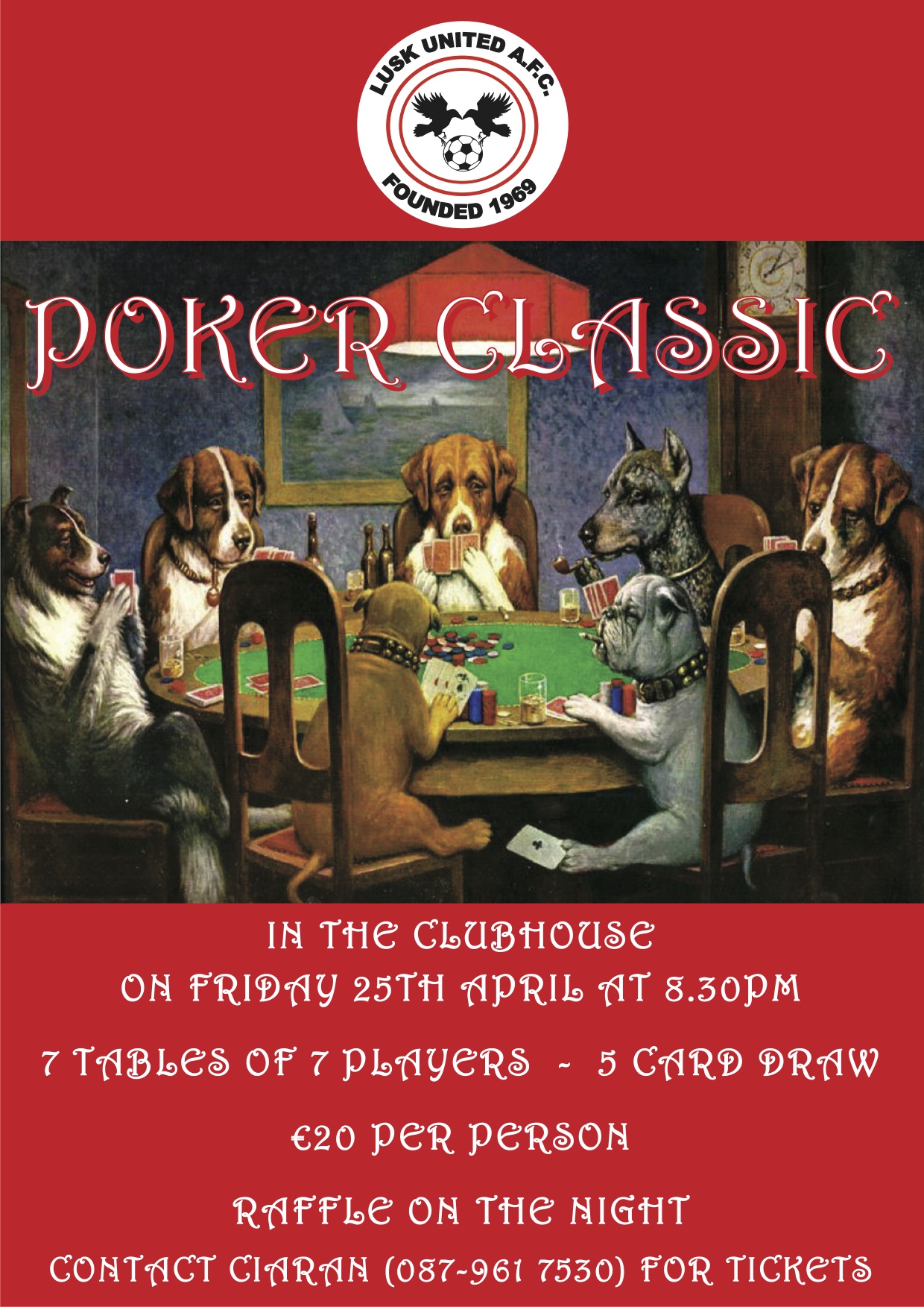 We will be holding a Poker Classic on Friday 25th at 8:30 pm