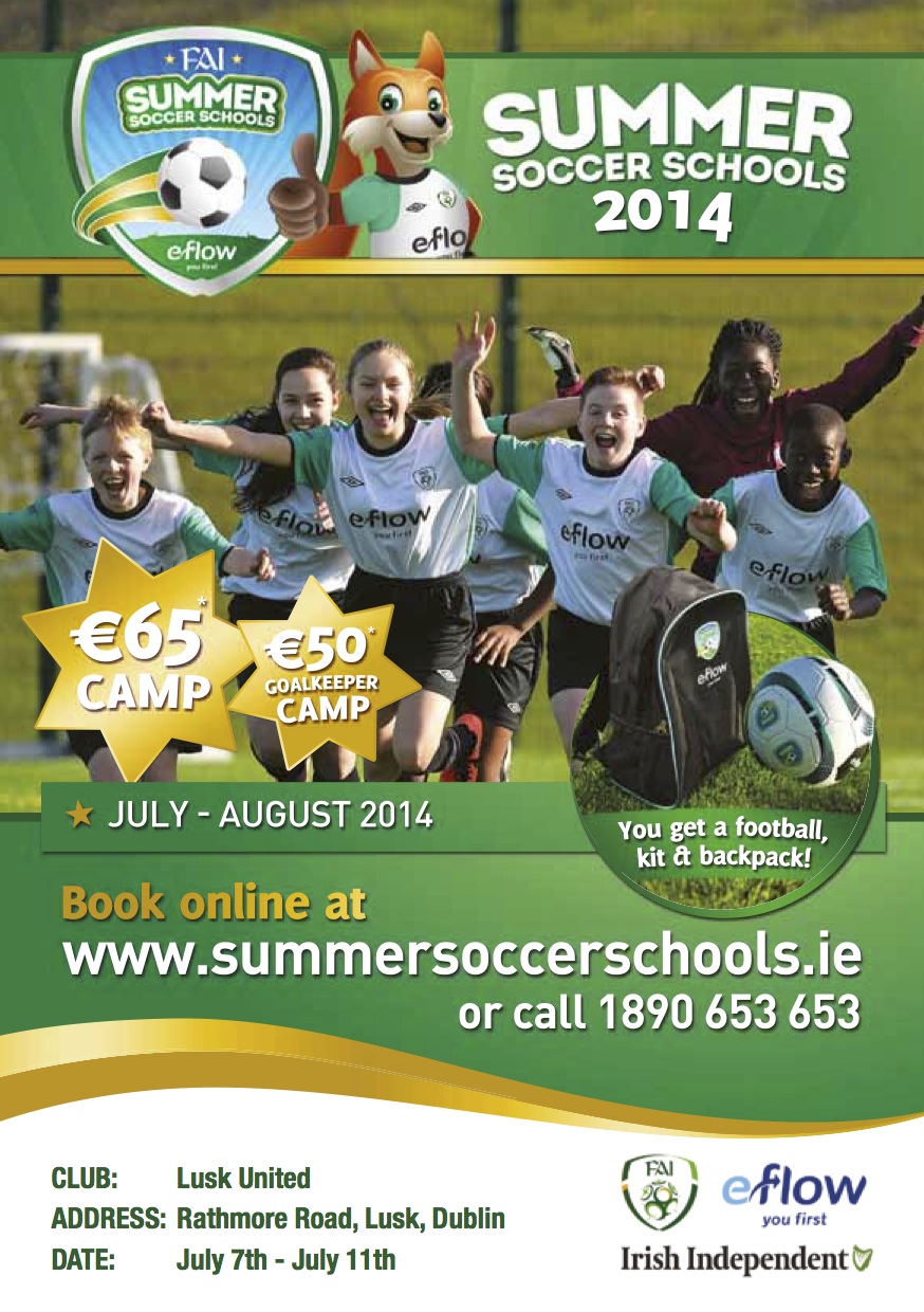 Have you booked your childs place on the FAI Summer Soccer Schools at Lusk United AFC?